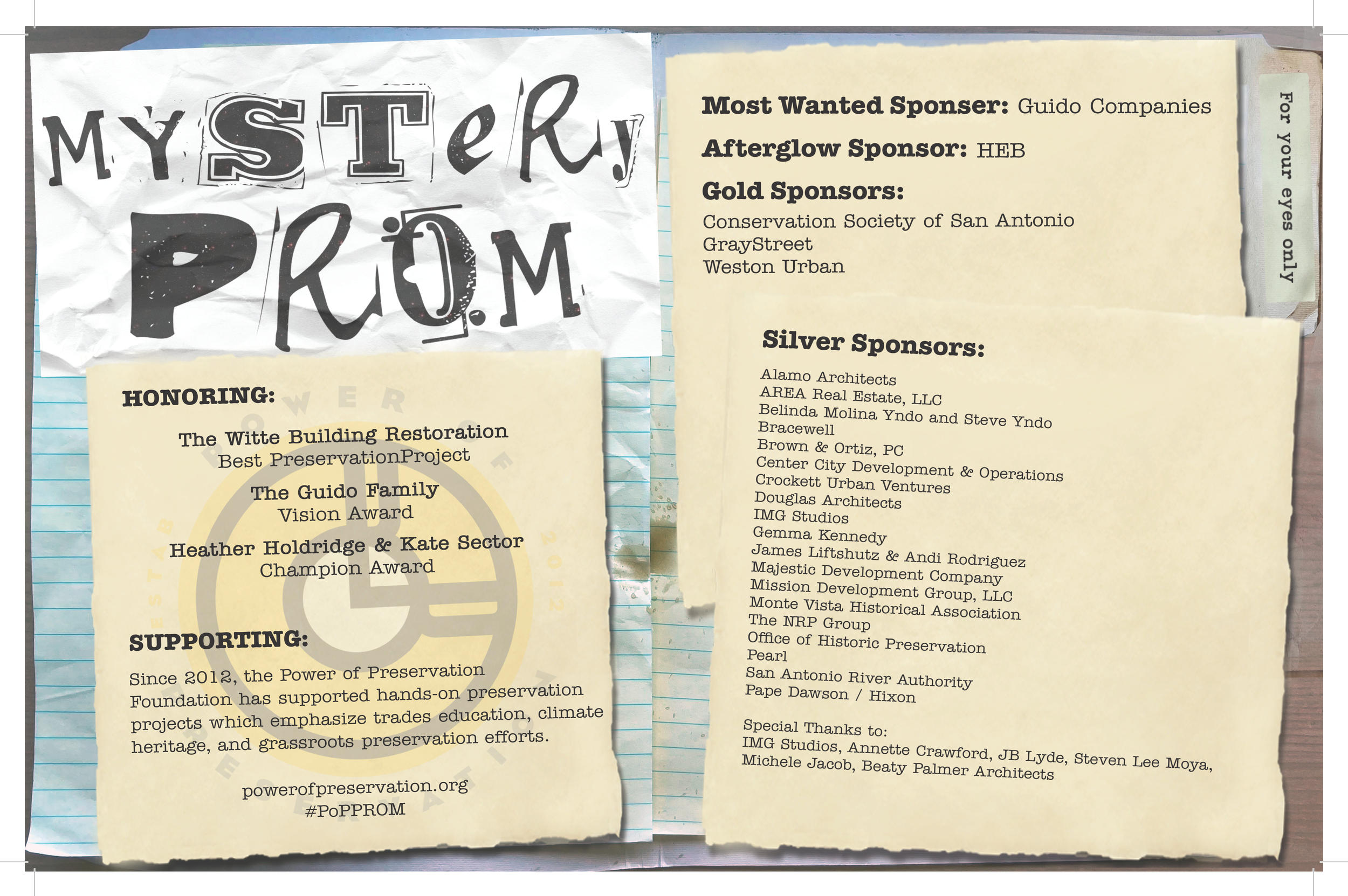 Every year, Prom celebrates in San Antonio’s historic (and unusual) spaces - a power plant, a department store, an airplane hangar, an auto dealership. But what was in the cards for Prom IX? Like any good mystery, this story was full of twists and turns - dead ends, red herrings, shell games, and alibis. The scene for Prom IX was site site of one of San Antonio’s most notorious crimes that wove together corrupt politicians, high stakes gambling, murder charges, and a dramatic raid by the Texas Ranger.